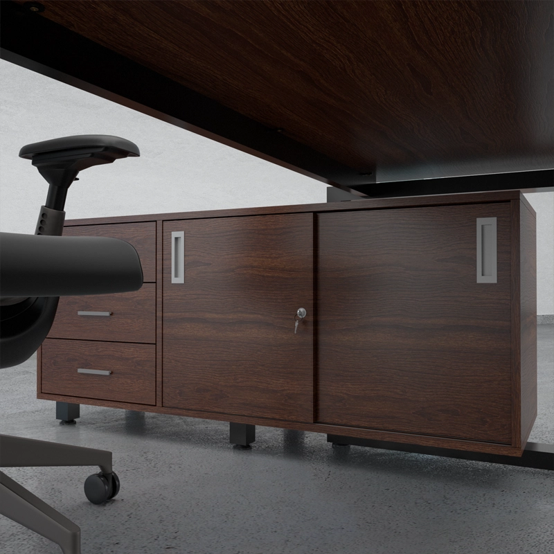 Credenza: Fabricado en melamina de 18mm compuesto por 3 cajones con llave y 2puertas corredizas